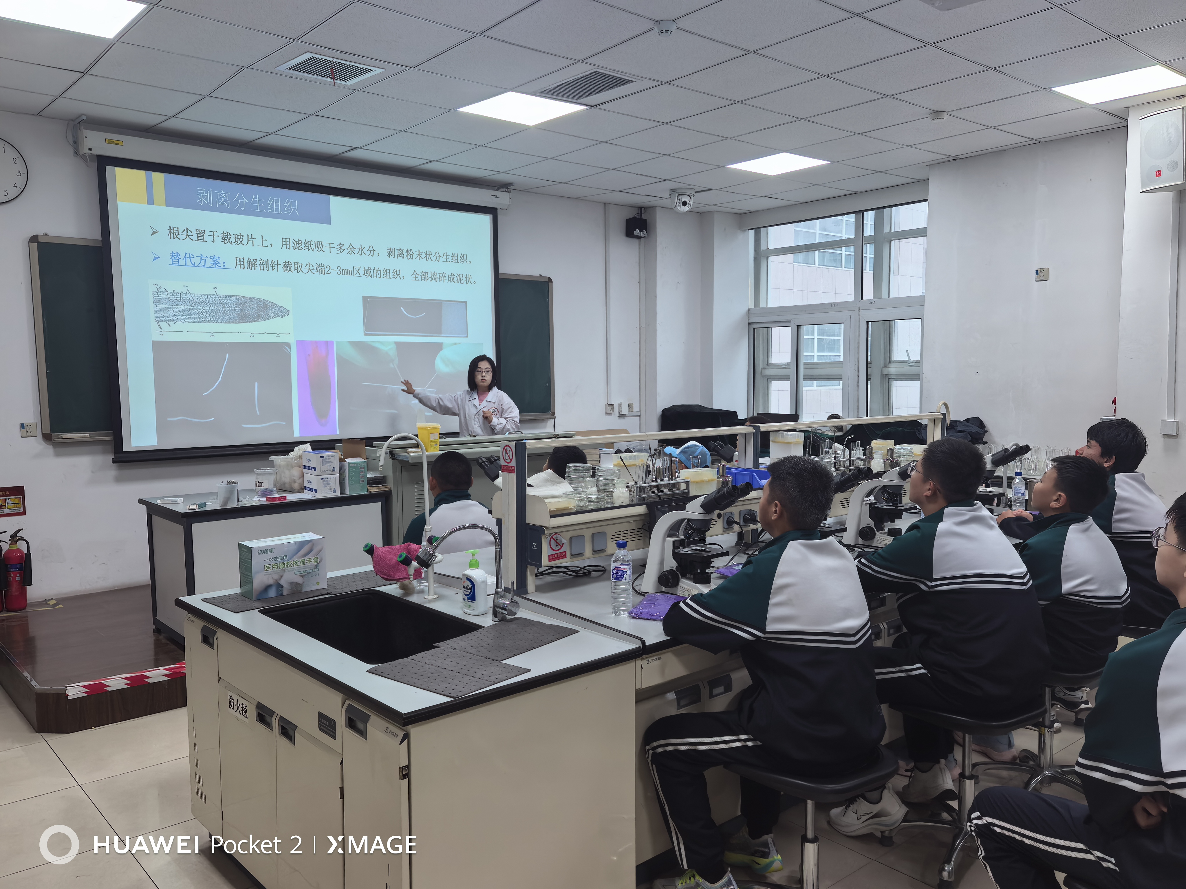 期间,学会会员高波、孟令军、姜丹、李臣亮等4 位教师全程组织参观了中心的实验室和指导了“细胞有丝分裂实验”。同学们通过教师趣味化的细胞分裂原理讲解和现场示范的制片过程与显微观察操作技巧,即学习了实验理论知识,又掌握了实践操作中的重点难点。在同学们实验操作过程中,教师针对学生在取材、染色、压片等过程中遇到的问题,逐一耐心指导,确保每位学生都能独立完成实验操作,并成功观察到细胞分裂间期、前期、中期、后期、末期的典型形态特征,收获满满的科学体验感。