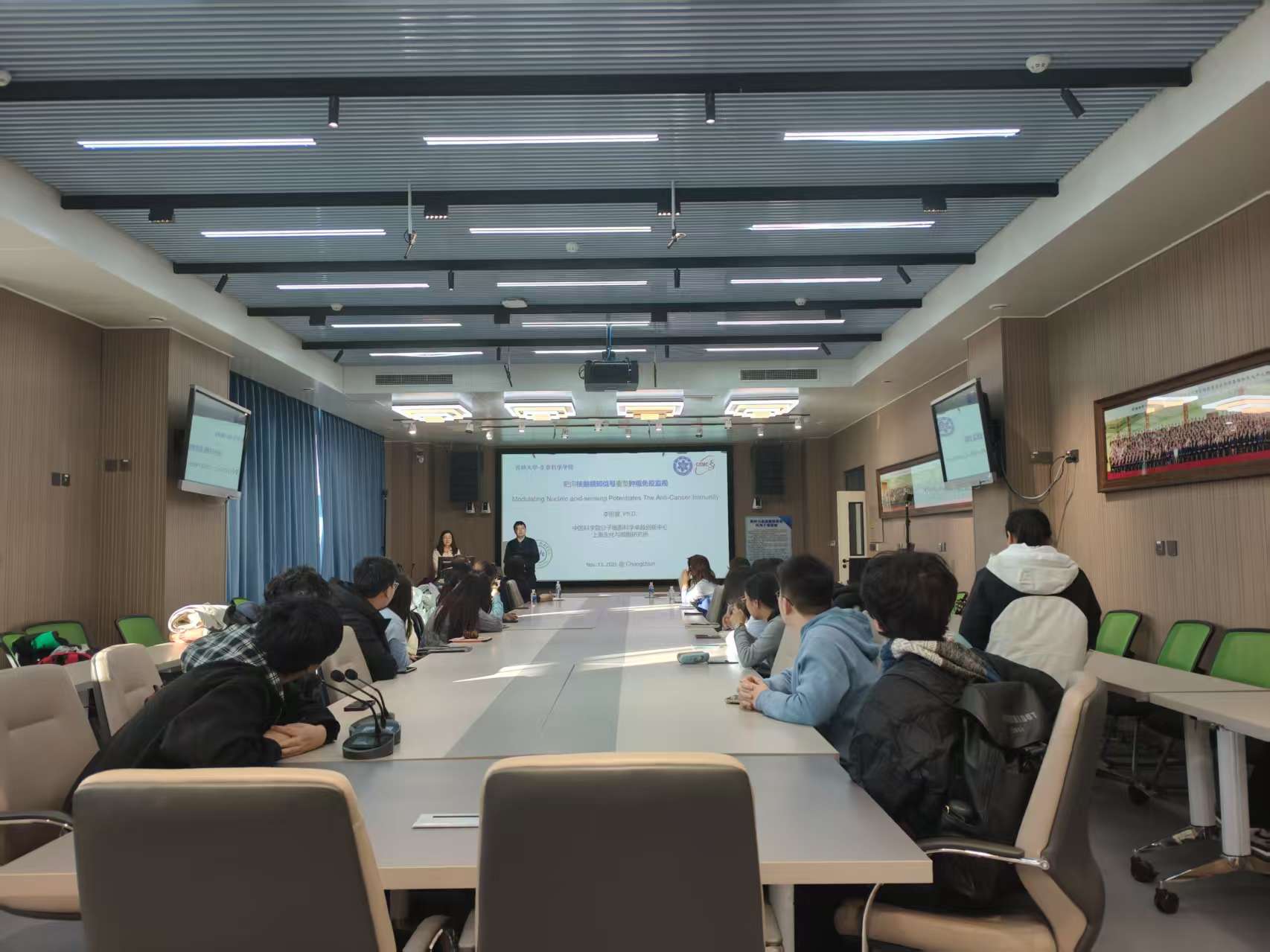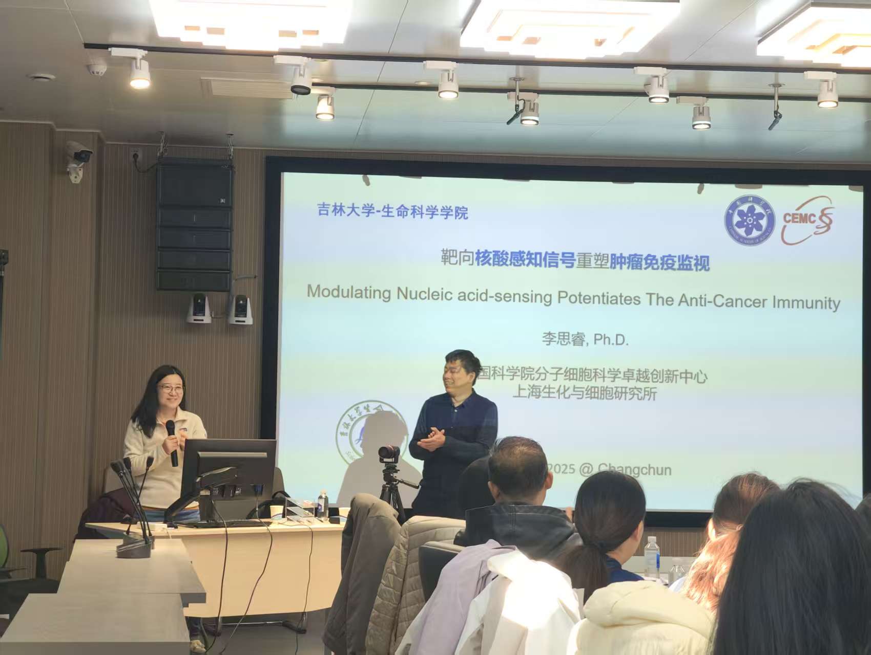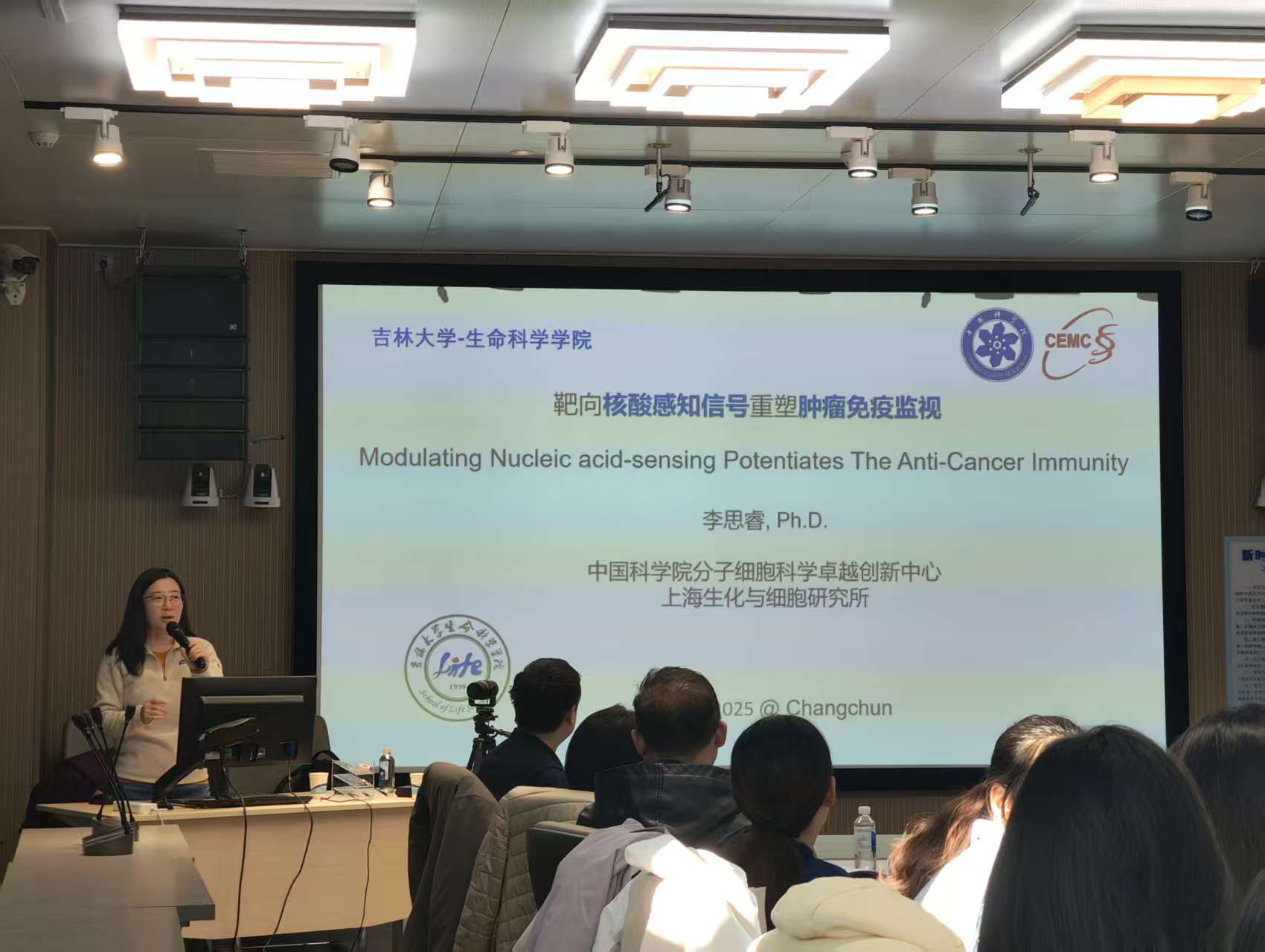 2025年11月13日,吉林大学生命科学学院、吉林省生物化学与分子生物学会特邀中国科学院分子细胞科学卓越创新中心李思睿研究员,作题为《核酸感知信号和肿瘤免疫治疗》的学术报告。报告由学会理事滕乐生主持,生命科学学院师生代表24人齐聚现场,共赴这场前沿学术盛宴。
